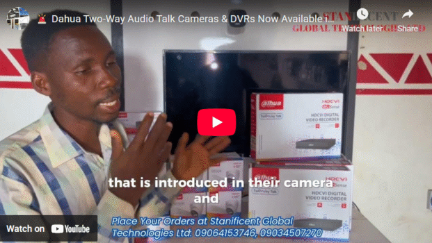 Take your security system to the next level with Dahua’s Two-Way Audio Talk Cameras and DVRs, now available through Stanificent Global Technologies Ltd — one of Nigeria’s top technology and security companies.