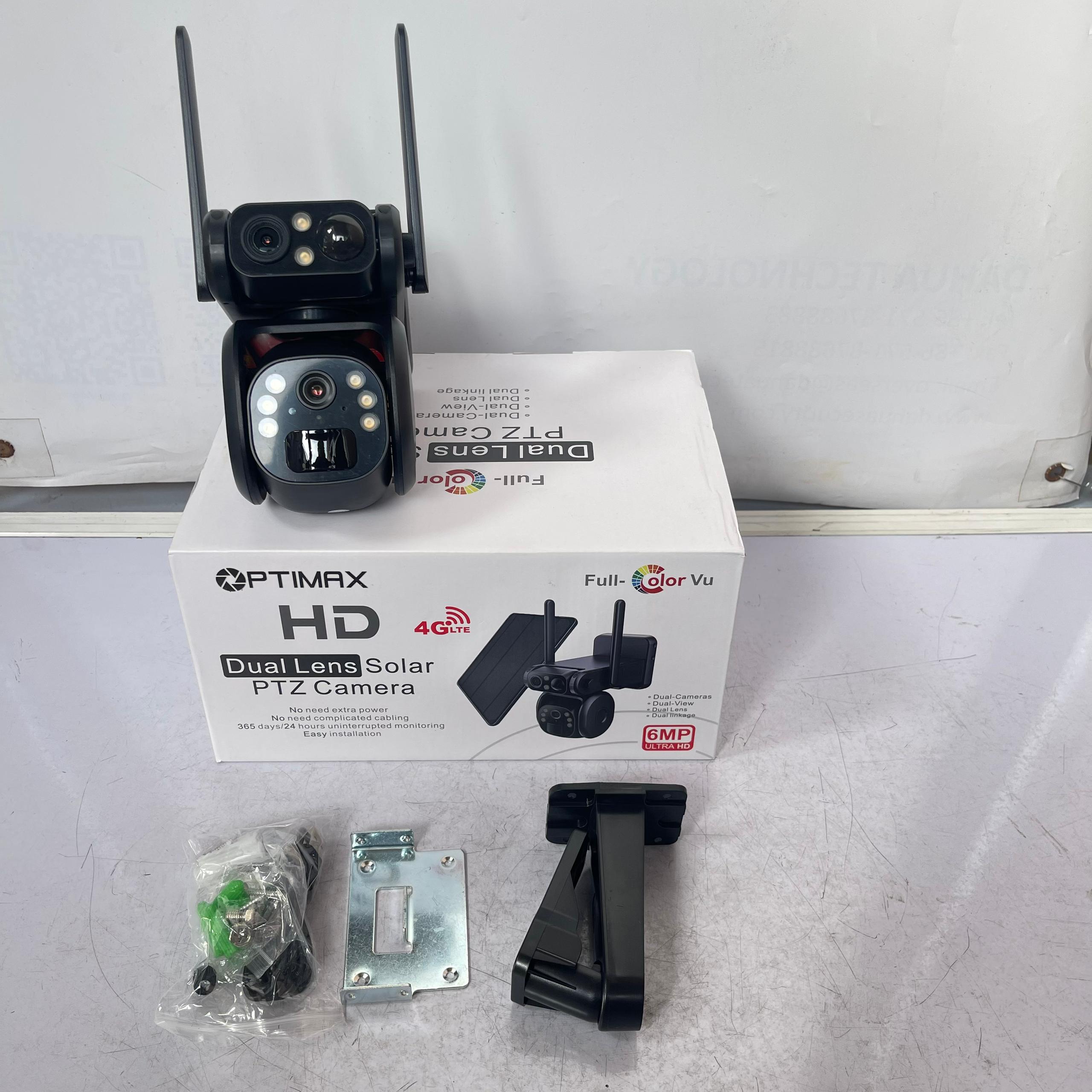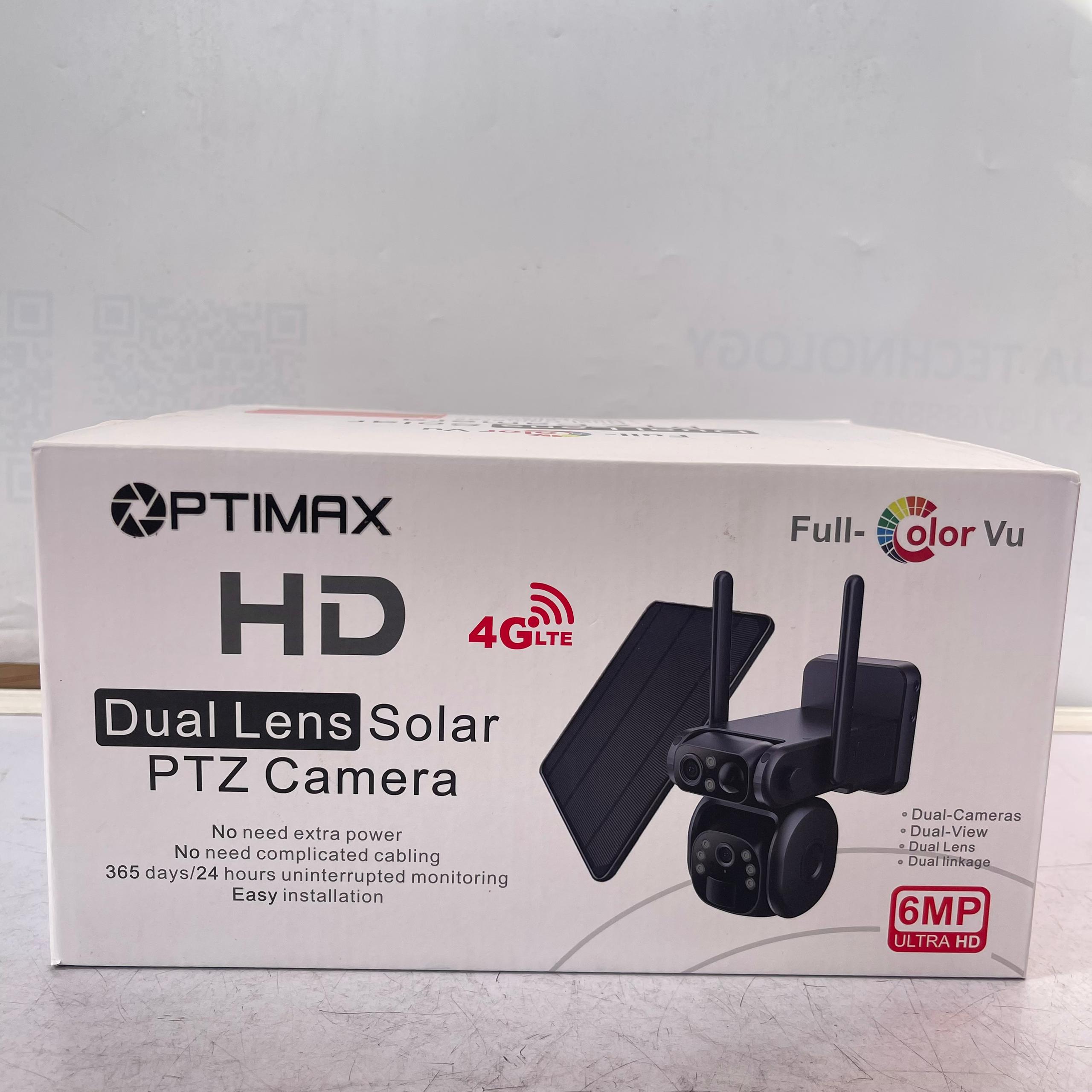 Optimax 6MP 4G Dual Lens Solar PTZ Mini Outdoor Camera With Auto Tracking (UBox App) (Black)