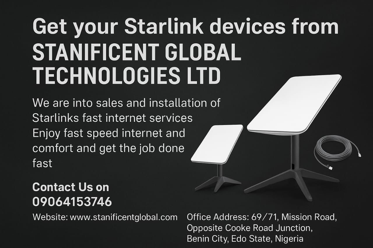 Stay connected anywhere in Nigeria with the powerful Starlink Gen 3 Standard Kit, proudly supplied by Stanificent Global Technology — your trusted partner for genuine Starlink devices and internet solutions.