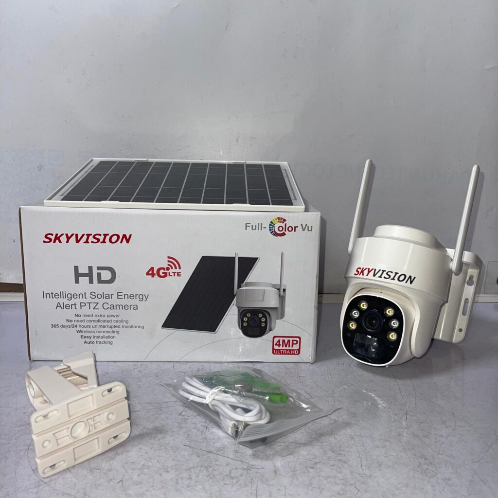 Upgrade your outdoor security with the Skyvision 4MP 4G Single Lens Solar Energy Alert PTZ Mini Outdoor Camera with Auto Tracking (SIM Enabled) – a compact but powerful solar-powered CCTV camera designed for 24/7 surveillance in Nigerian conditions.